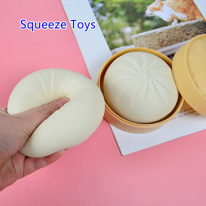 1Pc Simulation Steamed Stuffed Bun Toys With Steamer Simple Dimple Squishy Toy Autism Anti Stress Toys Children Adults Gift